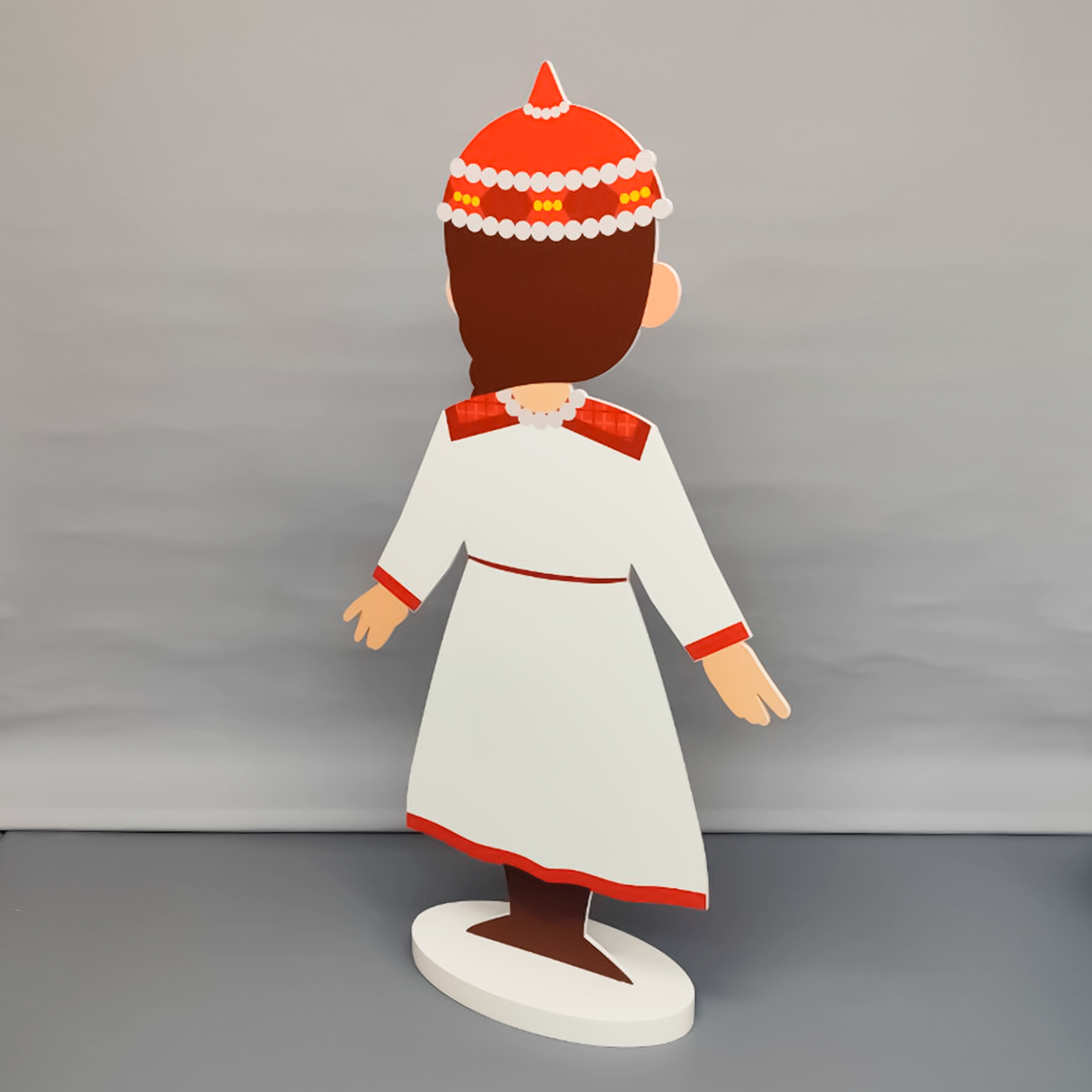 Фигуры-стойки двусторонние, внизу оборудованы устойчивым утяжелителем, высота - 80см. Материалы: ПВХ, полноцветная печать.